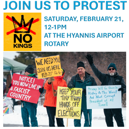 JOIN US! HONOR MLK with a NO KINGS!! PROTEST.- Jan 17, Hyannis – 12-1PM