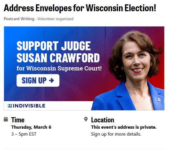This is actually not postcards- we are now stuffing and addressing envelopes to Wisconsin voters!! This election is so important. CCWfC MidCape Indivisible is purchasing the stamps and envelopes – the letters are pre-printed. We are adding another table and chairs. LETS GET IT DONE! RSVP HERE