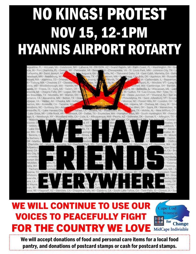 - Who: Cape Cod Women for Change, Mid Cape Indivisible