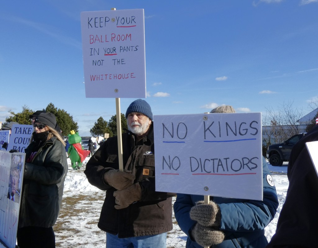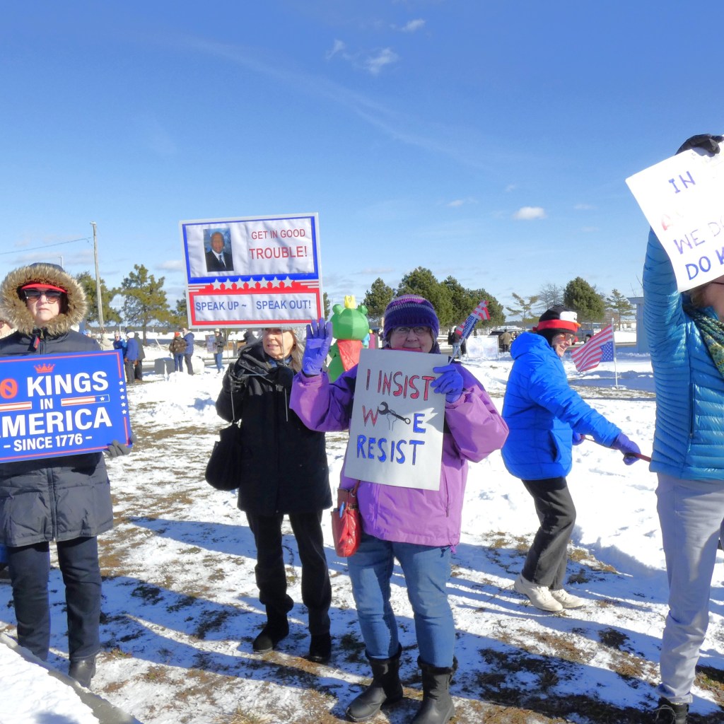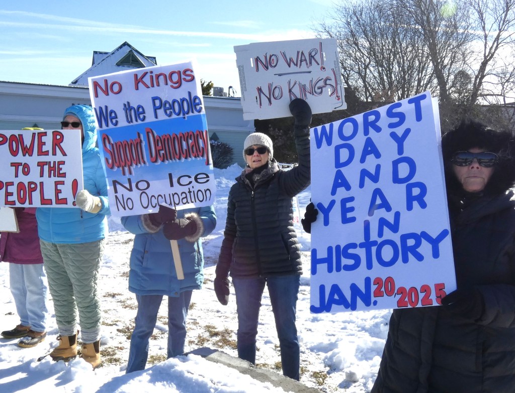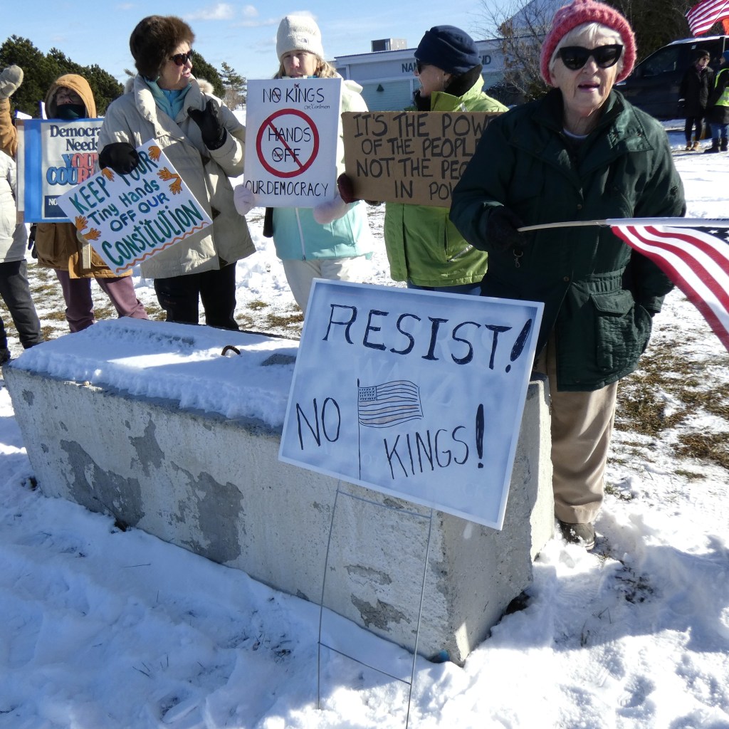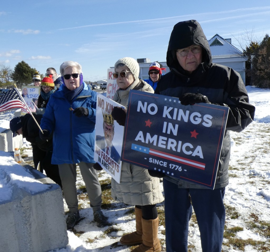 We are going to continue the momentum with NO KINGS protests twice a month. This is the first – let’s show the MAGA and Trump we won’t back down. Join us the first and third Saturday from 12 noon – 1pm through the winter!! Get your long johns on and join us for an hour twice a month.