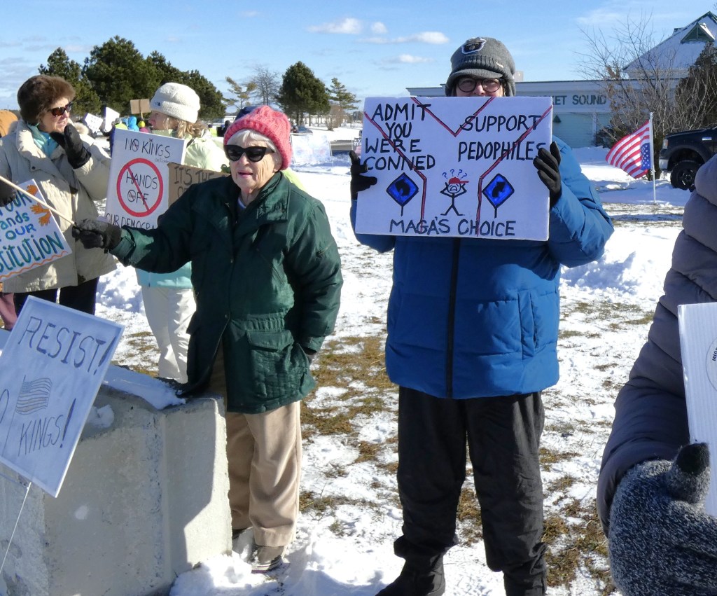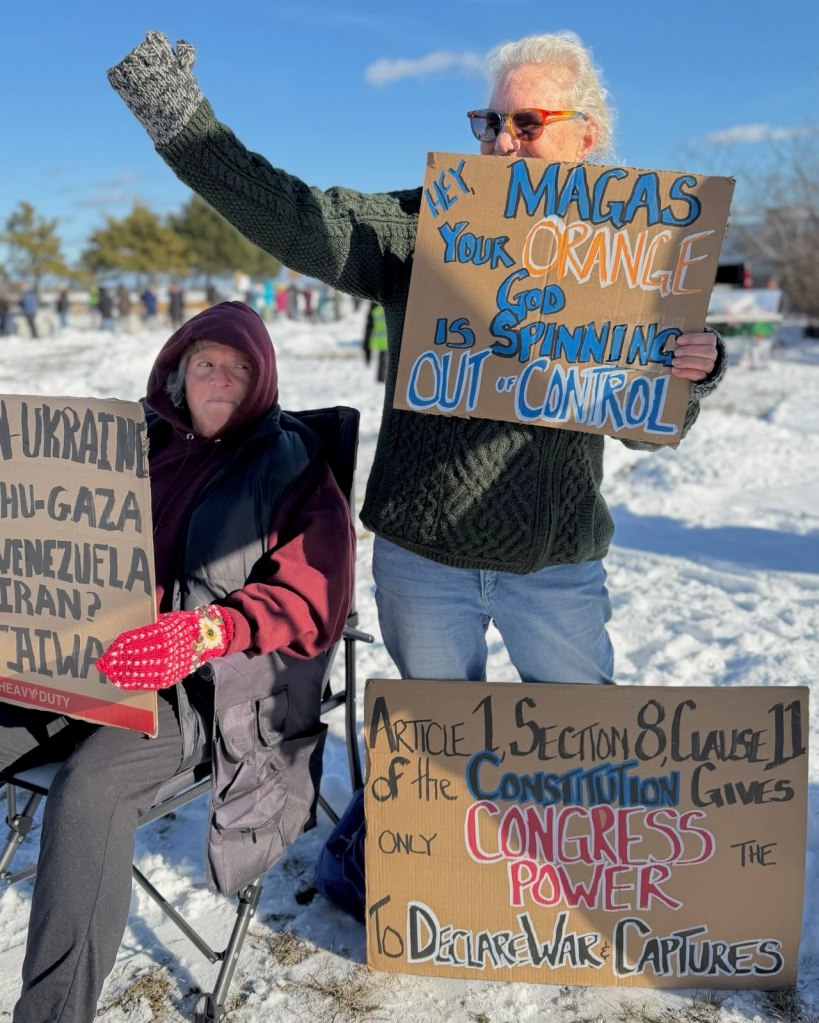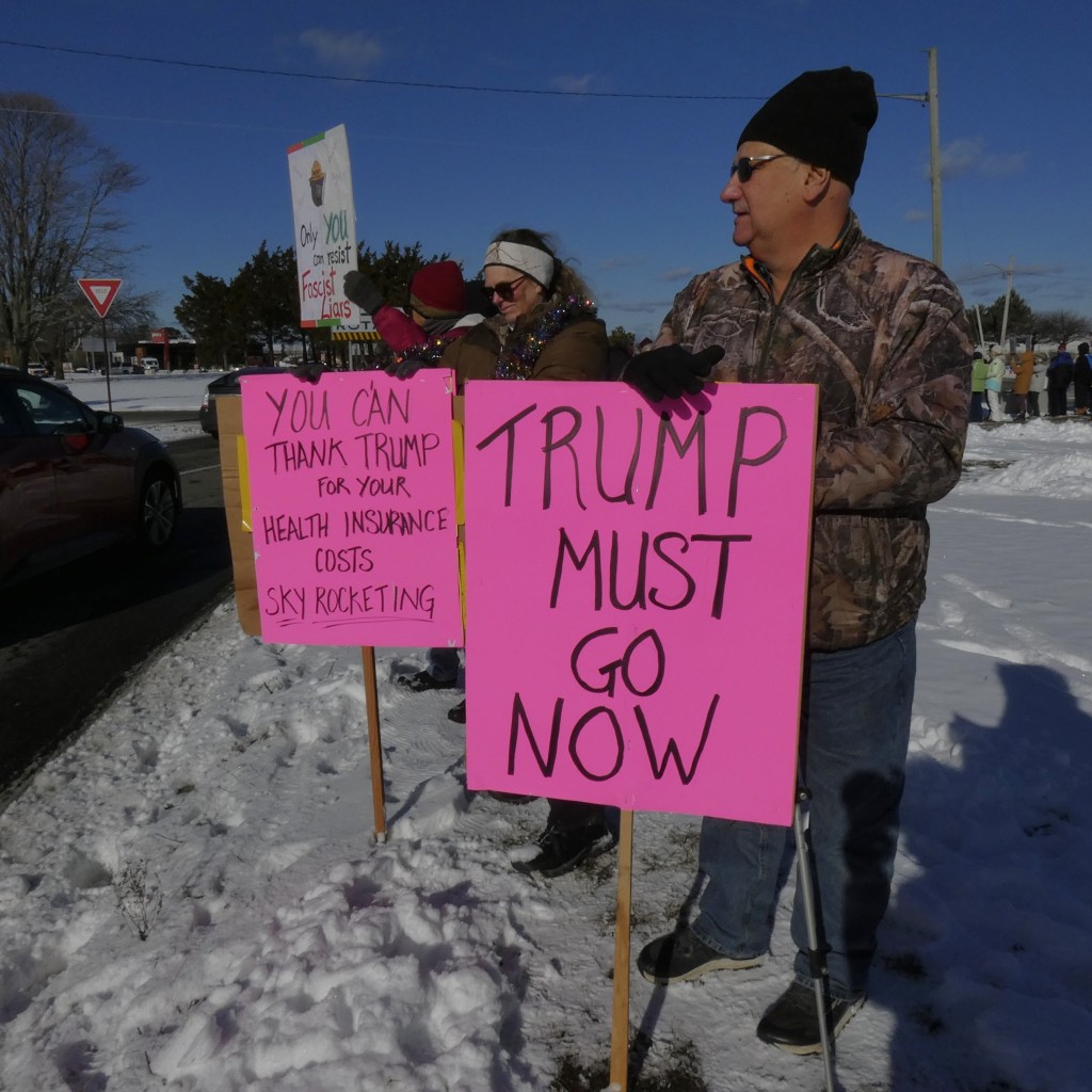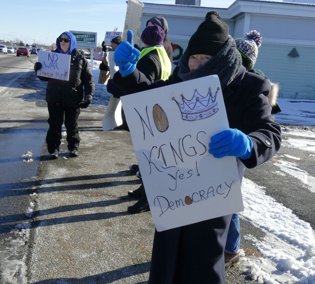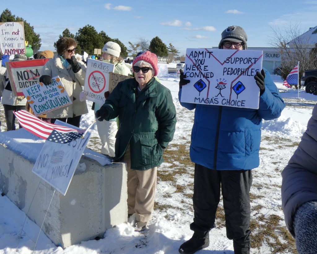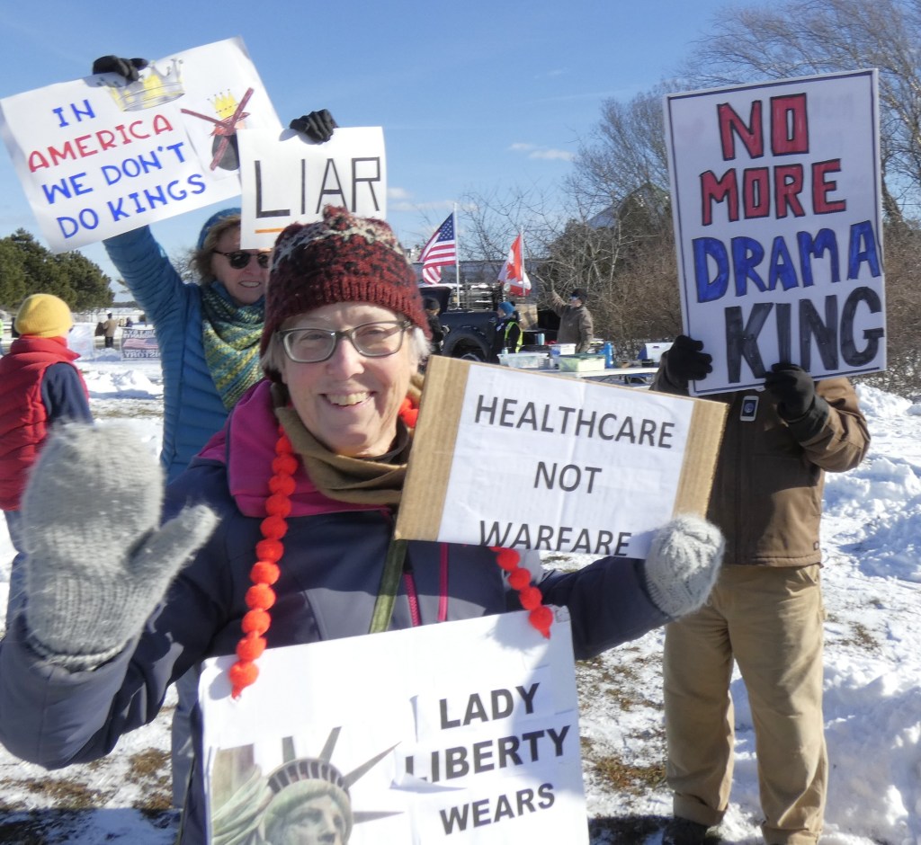 We are going to continue the momentum with NO KINGS protests twice a month. This is the first – let’s show the MAGA and Trump we won’t back down. Join us the first and third Saturday from 12 noon – 1pm through the winter!! Get your long johns on and join us for an hour twice a month.