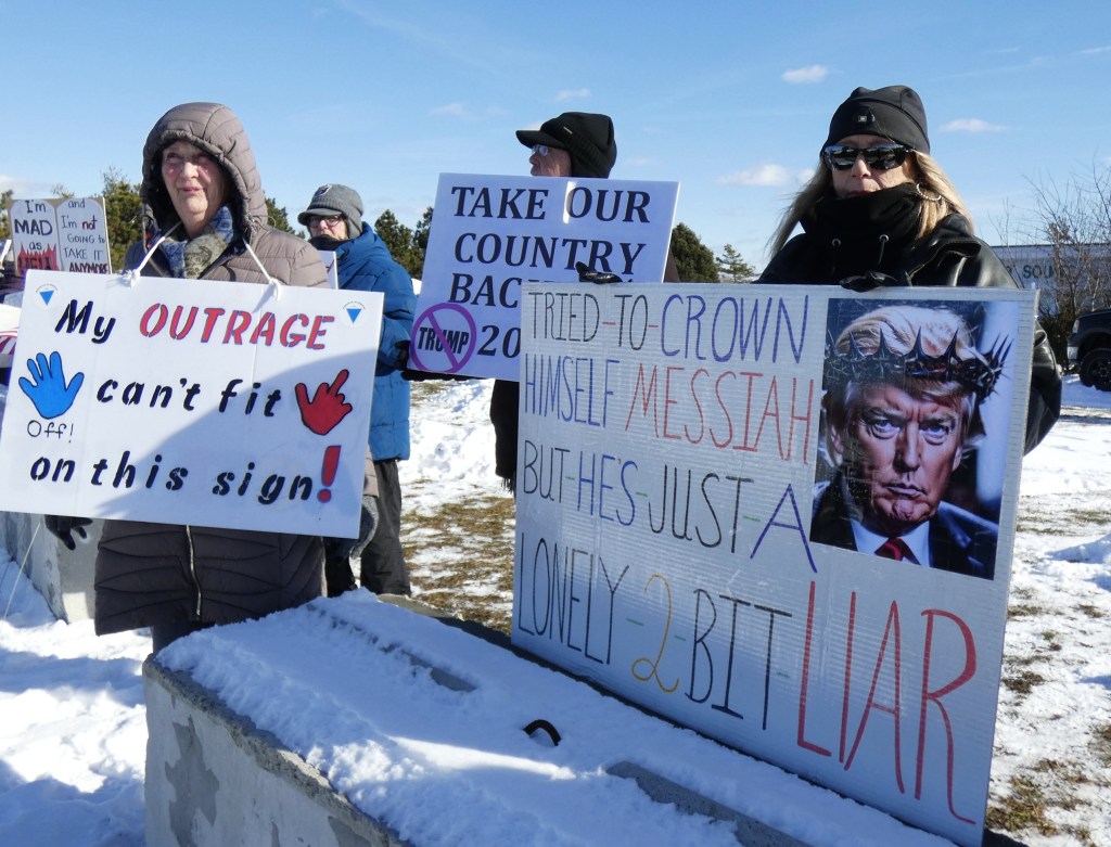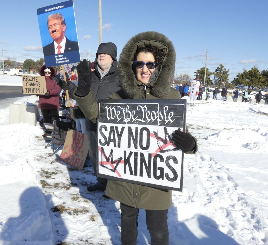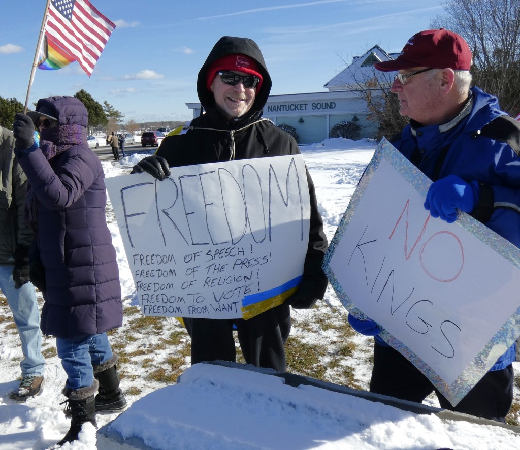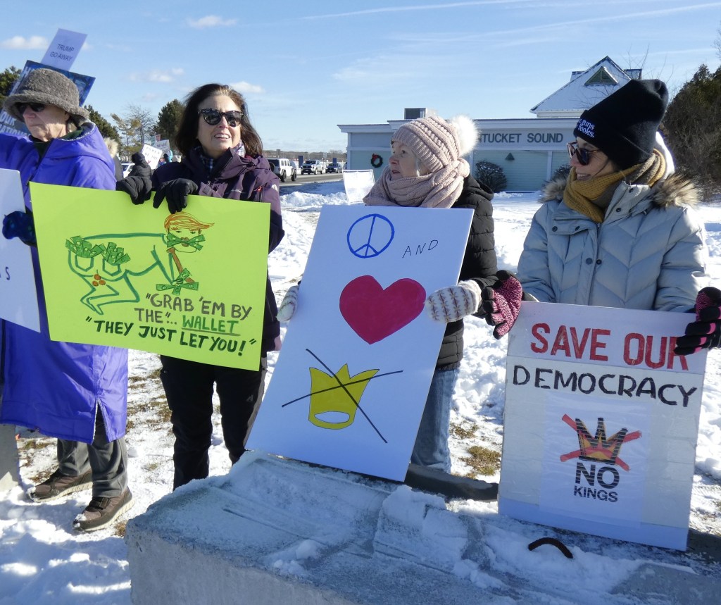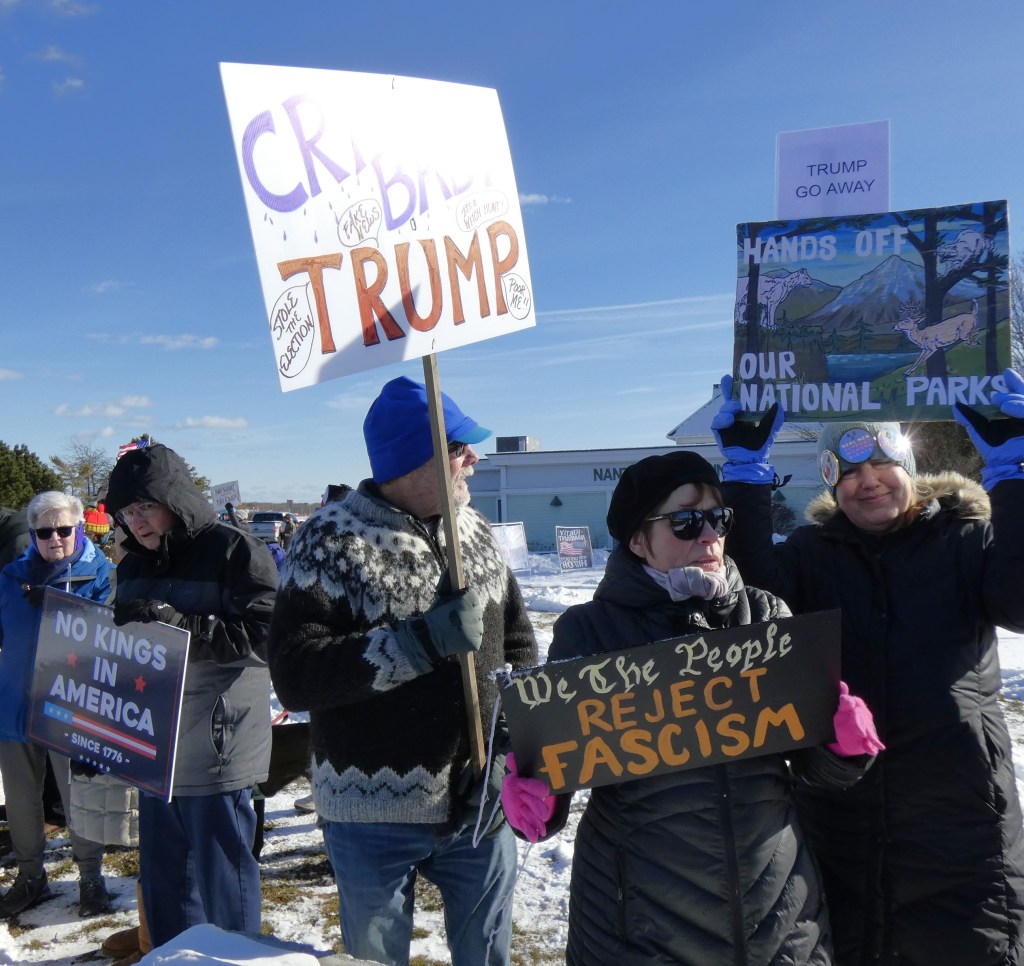 We are going to continue the momentum with NO KINGS protests twice a month. This is the first – let’s show the MAGA and Trump we won’t back down. Join us the first and third Saturday from 12 noon – 1pm through the winter!! Get your long johns on and join us for an hour twice a month.