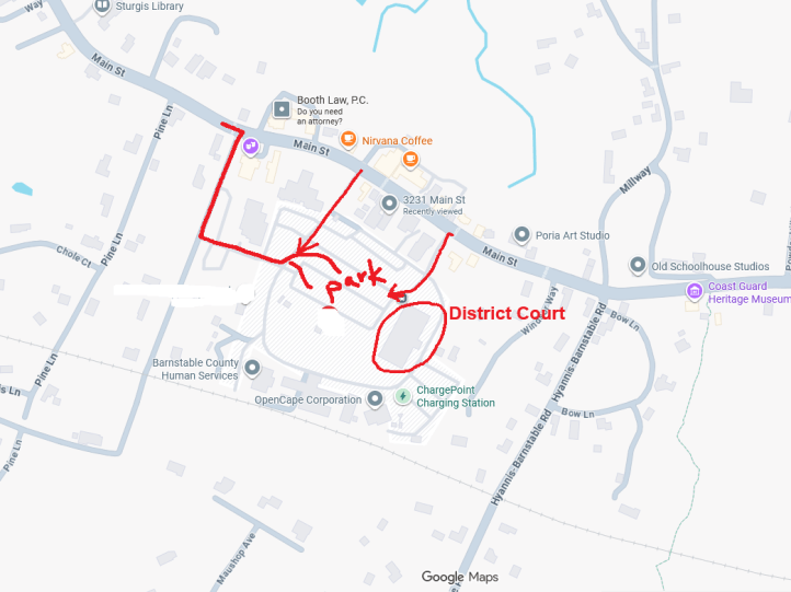 Afouxenides next court appearance is Dec 2nd in Barnstable District Court, scheduled for 9am- go through metal detector and it’s the courtroom on the left side of the lobby. You may want to bring a book or magazine in case we have to wait.