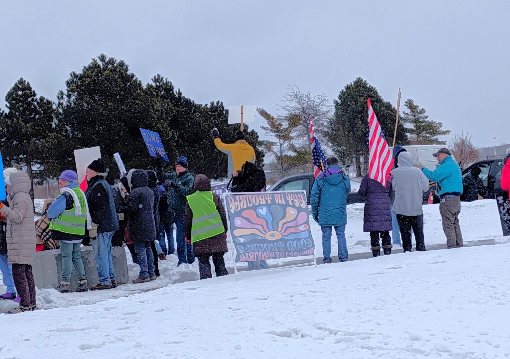 Join the crowd! Bring a sign or hold one of our flags, signs or banners. DRESS WARM- OUR DJ WILL KEEP US MOVING. We have blow-up costumes for anyone who want to wear one.