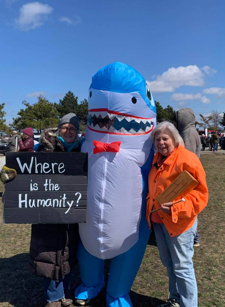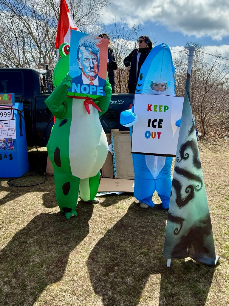 Join the crowd! Bring a sign or hold one of our flags, signs or banners. DRESS WARM- OUR DJ WILL KEEP US MOVING. We have blow-up costumes for anyone who want to wear one.
