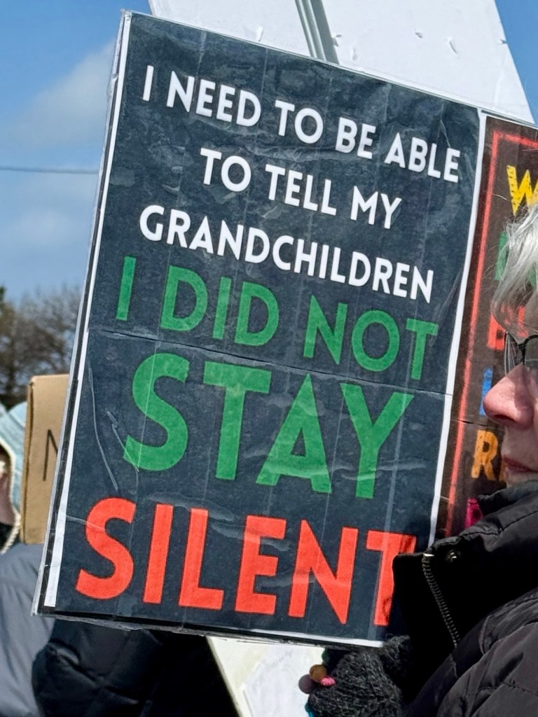We are not going to be quiet about INCREASING WARS, war crimes (murder!) being committed without congress declaring a war, rapist and pedophilia protection, skyrocketing healthcare cost, our goverment cuddling up to dictators while grifting millions of dollars at our expense and so much more. Corruption will not win. Greed will not win. Empathy is what should guide our leaders and will guide us!