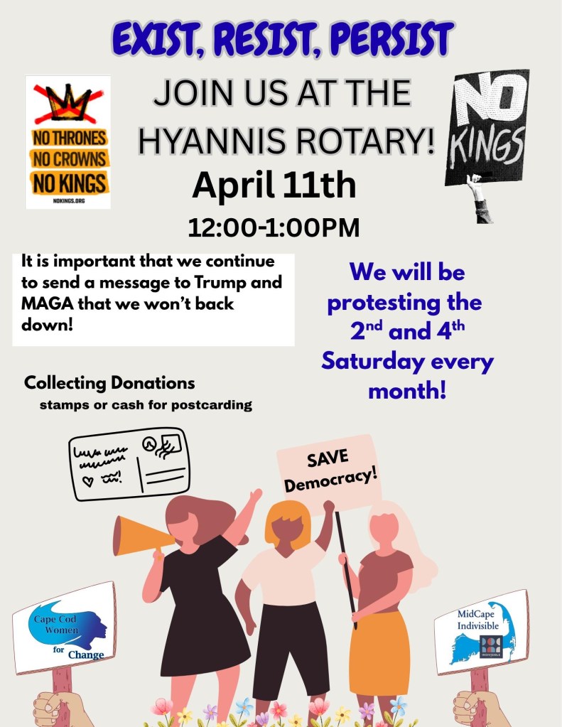 We are going to continue the momentum with NO KINGS protests twice a month. This is the first – let’s show the MAGA and Trump we won’t back down. Join us the first and third Saturday from 12 noon – 1pm