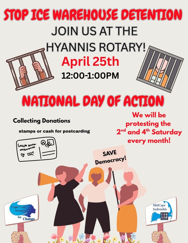 - STOP ICE WAREHOUSE DETENTION Protest – National Day of Action, April 25, 12-1pm Airport Rotary